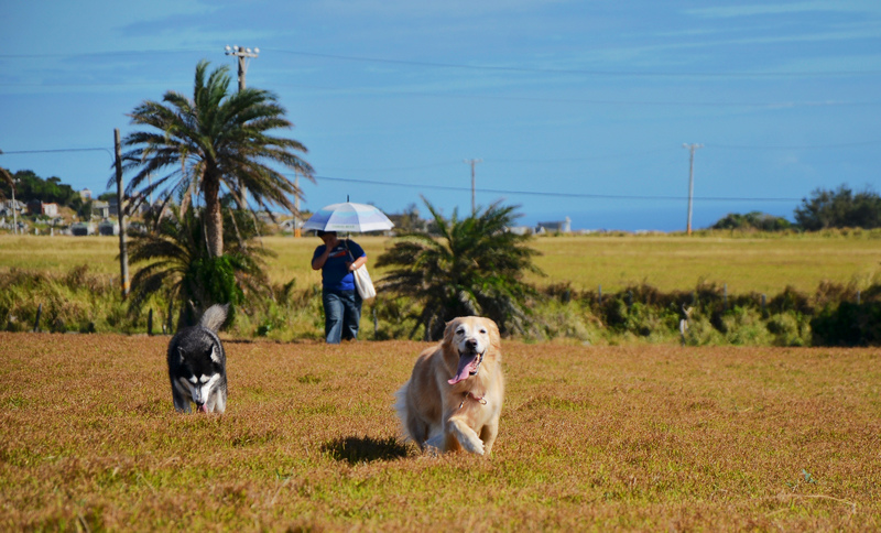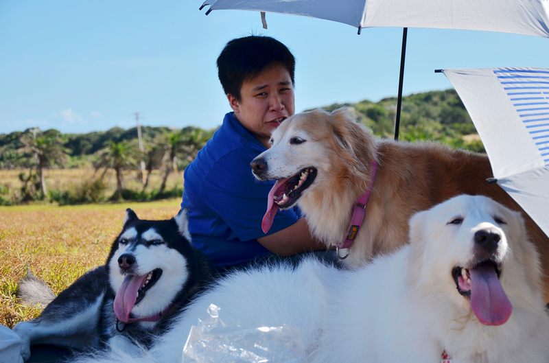 大人們就帶著寵物專用墊 (防水墊) 幾瓶水、土司和雨傘